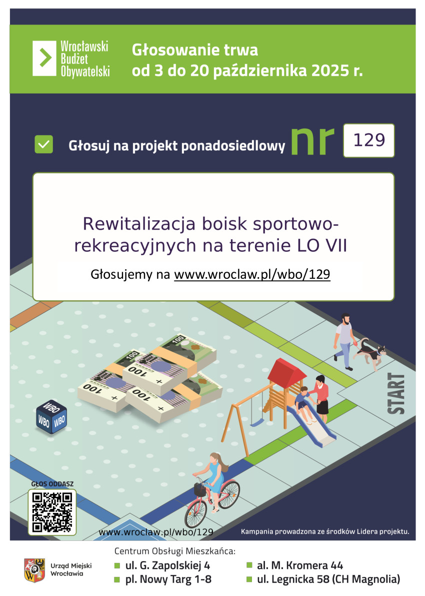 Głosowanie odbywa się elektronicznie na www.wroclaw.pl/wbo/129 i papierowo w Centrach Obsługi Mieszkańca.