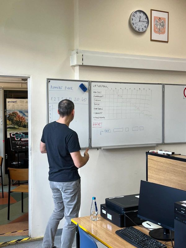 W czasie zajęć uczniowie zapoznali się z tematami dotyczącymi zarządzania projektami i tworzenia misji programistycznych. Uczniowie rozwiązywali zadania (misje) na Platformie LNU. Wszyscy aktywnie uczestniczyli w zajęciach, zadawali pytania, proponowali rozwiązania.