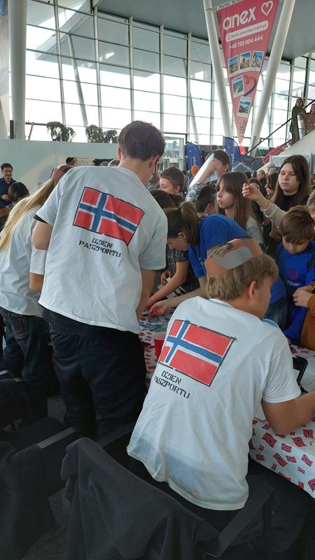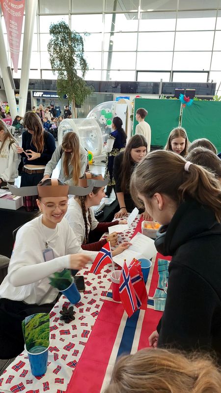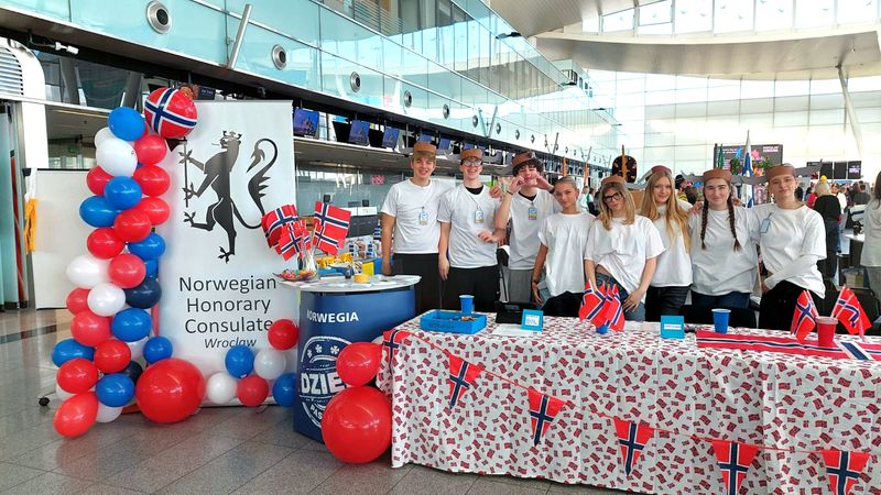 Tym razem uczestnicy wydarzenia „podróżowali” po stanowiskach poszczególnych konsulatów na terenie hali odlotów Portu Lotniczego. Uczennice i uczniowie z klasy 3E naszego liceum reprezentowali Konsulat Honorowy Norwegii i z dużym zaangażowaniem zachęcali uczniów szkół podstawowych do udziału w konkurencjach przybliżających właśnie ten skandynawski kraj.