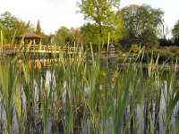 Wejście do ogrodu wieńczy SUKIA-MON, drewniana brama, z prawej strony której stoi TOUROU MICHISHIRUBE - mała kamienna latarnia o podstawie kwadratowej. Brama, wraz z oryginalnym japońskim ogrodzeniem symbolizuje wejście do ogrodu-raju.
