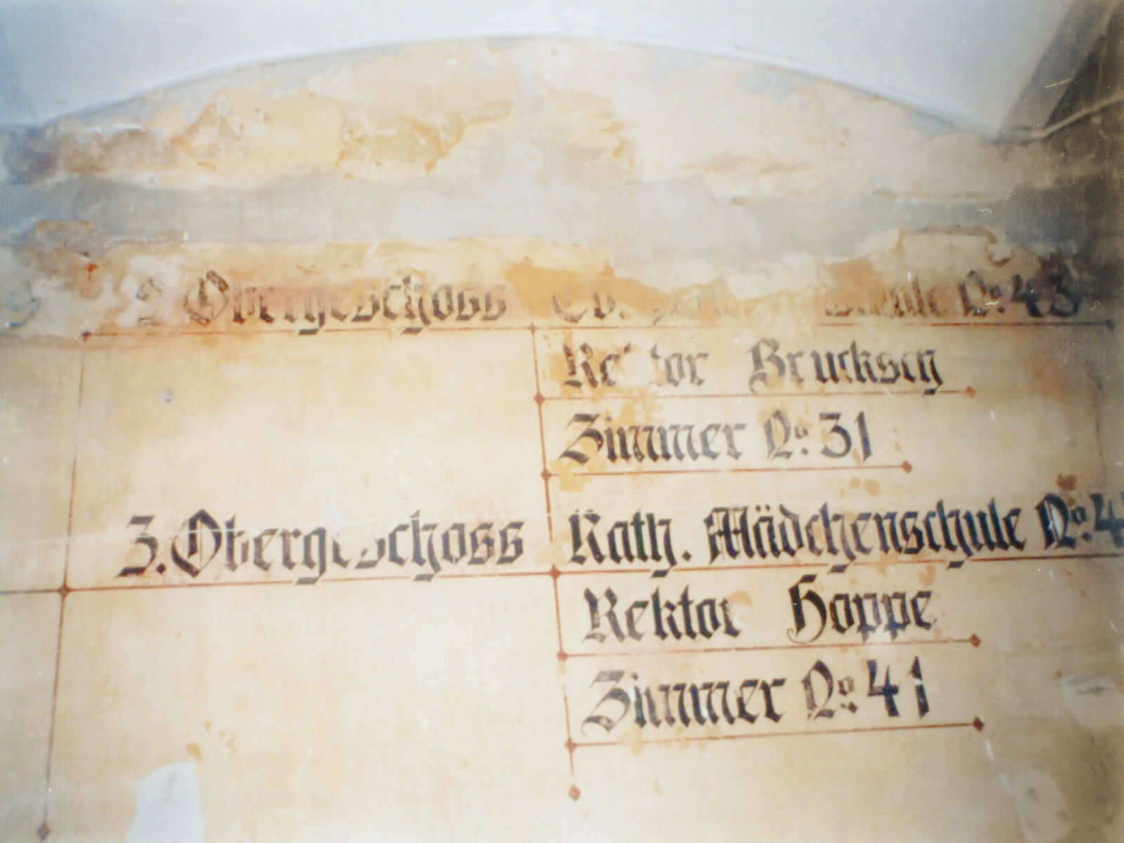 są to stare napisy, które odkryto podczas malowania szkolnego korytarza